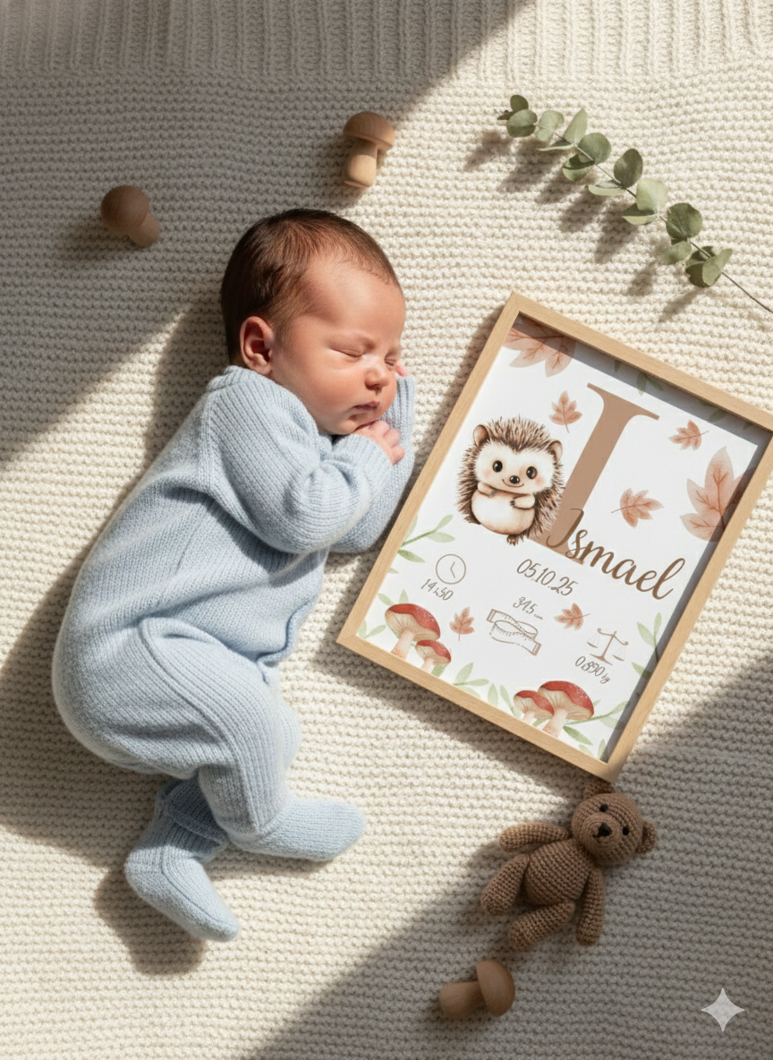 Affiche de naissance personnalisée, hérisson déco chambre enfant